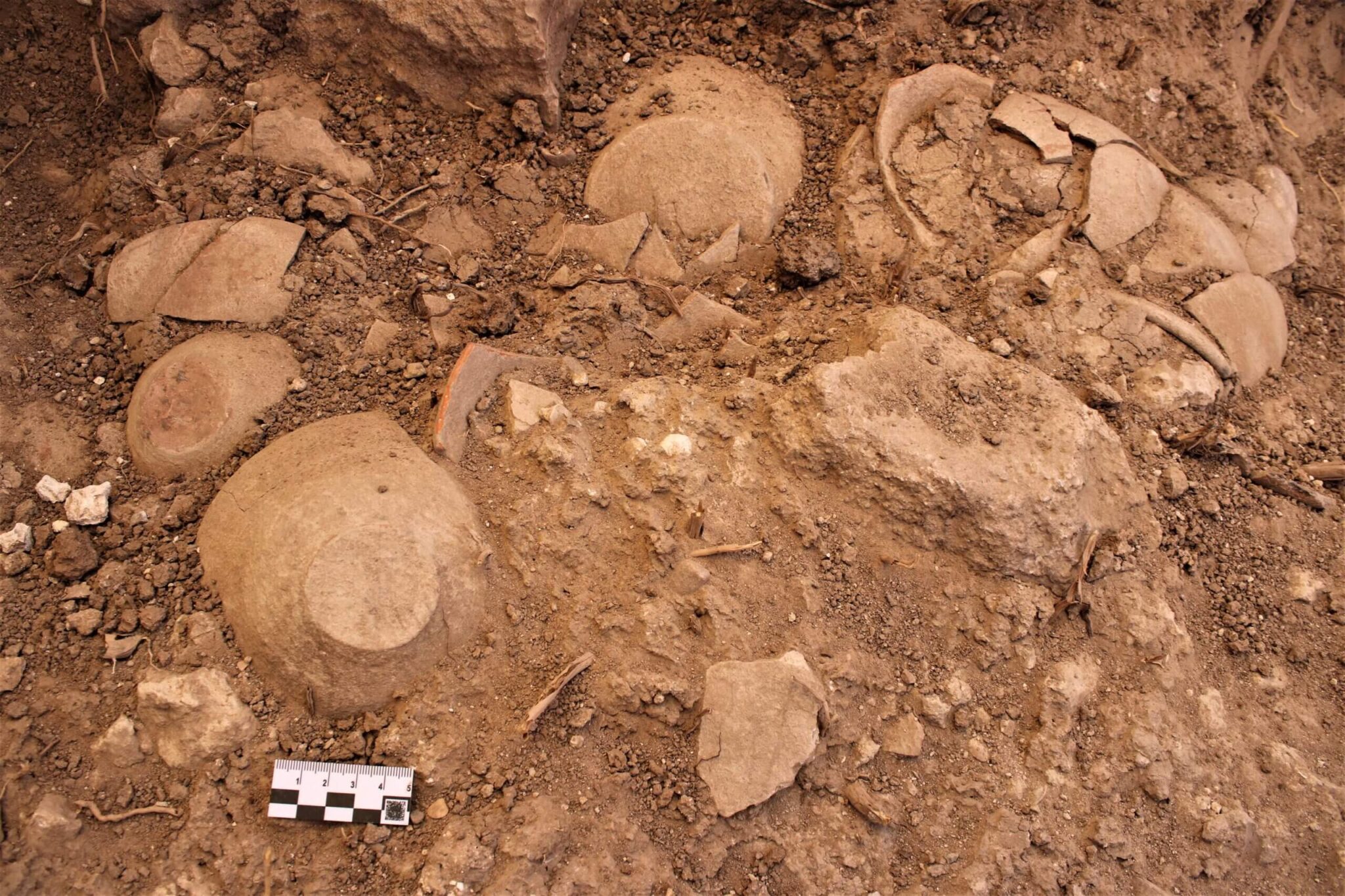 קערות שנחשפו בחפירה בגלאון. צילום סער גנור רשות העתיקות
