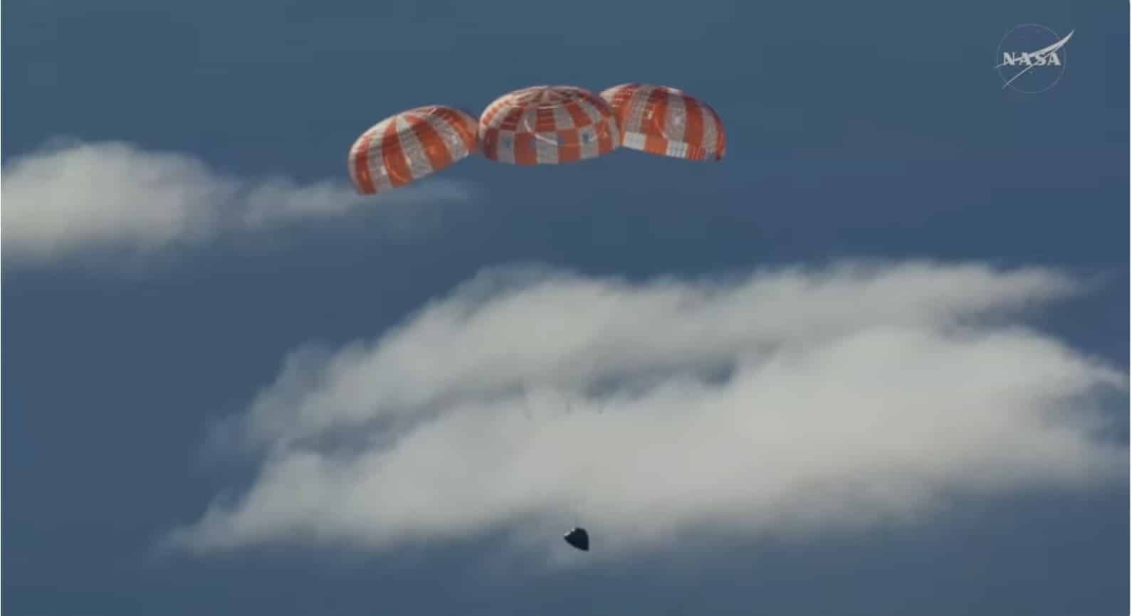 שניות לפני הנחיתה של החללית ארטמיס 2. צילום מסך: נאס"א