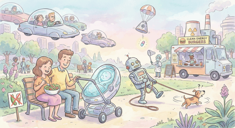 עתידנות, רפואה, רחם מלאכותי, פקטורי ימאנקה, הצערת תאים, היתוך גרעיני, כורים מודולריים קטנים, תרופות מהחלל, מיקרו־כבידה, בינה מלאכותית, רובוטים הומנואידיים, מונית אווירית