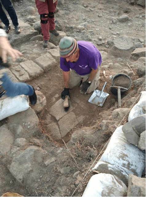 בתמונות: הכתובות, ד"ר חיים כהן ופרופ' מיכל ארצי ליד הכתובת באתר כורסי ליד הכנרת. צילום: ג'ני מונרו (Jennifer Munro)