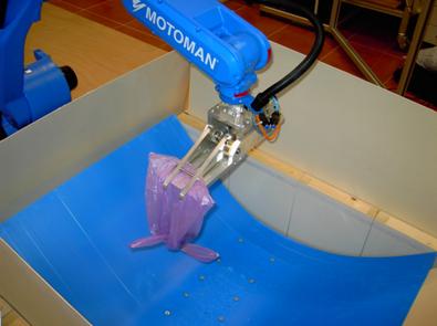 איור 1. זרוע רובוטית הלומדת כיצד לרוקן שקית המכילה חומרי חבלה שאינם קונבנציונאליים (בתנאי מעבדה)