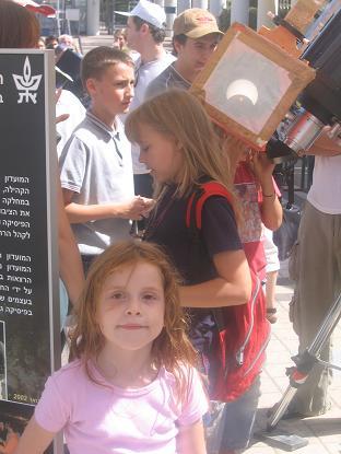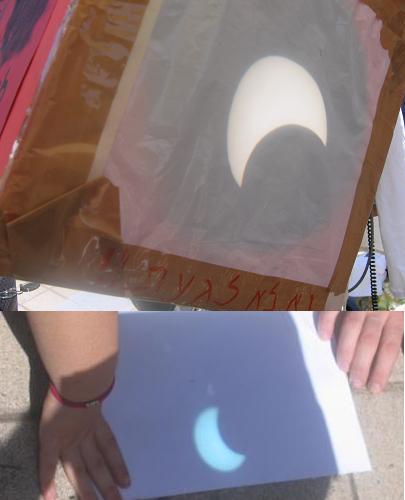 בכל זאת, לטובת אלו שלא הצליחו לראות את הליקוי בטלסקופים (שהושמו עליהם כמובן את הפילטרים המתאימים) יכלו לראות זאת באמצעות הקרנה מהטלסקופ לנייר שהודבק על צידה של קופסא חלולה (שנשארה כך עוד מהמעבר של נוגה על פני השמש לפני כשנה). וכך ניתן היה להביט במצב הירח המכסה את השמש עד לשיאו של הליקוי החלקי כפי שנראה מישראל -42 אחוזים.
