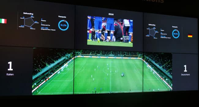 מערכת לניתוח משחק כדורגל בזמן אמת כפי שהוצגה בביתן SAP בתערוכת סביט 2014. צילום: אבי בליזובסקי