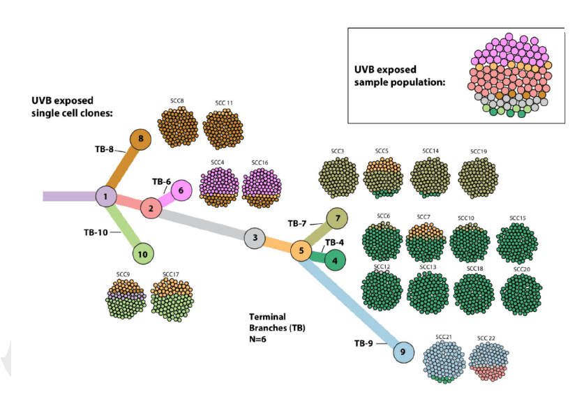 עץ פילוגנטי הממפה את הרכב התאים בתרבית ההטרוגנית ואת התפתחותם של תת-סוגי התאים על ציר הזמן. בהסתמך על תרשים זה הרכיבו החוקרים "קוקטיילים" תאיים ברמות הטרוגניות משתנות. מתוך מחקר של פרופ' ירדנה סמואלס ושותפיה, מכון ויצמן
